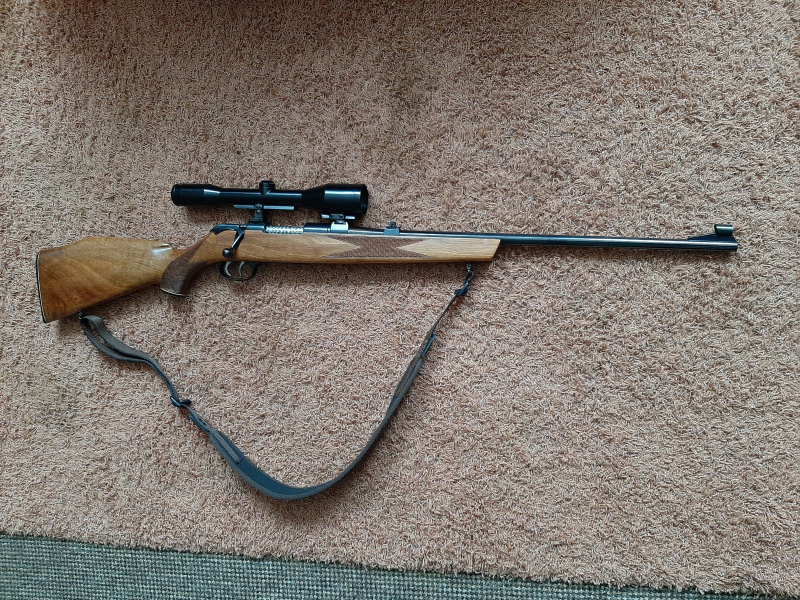 Krico Repetierer, kal. 222 Remigton, Zeissglas 6x42, Absehen 1, Suhler Einhakmontage.