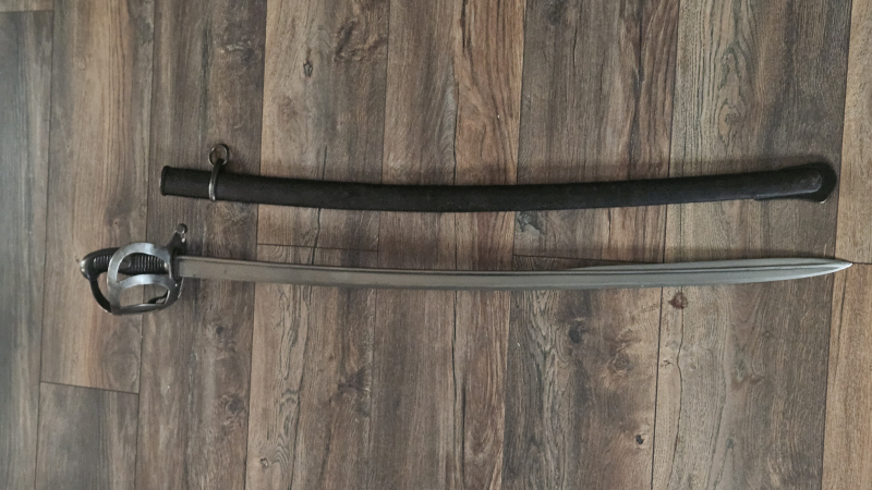 Mit preußischer Abnahme, W80 auf der Fehlschärfe. Säbel und Scheide sind nummerngleich. Gelöschter Truppenstempel vom Husaren Regiment 11, jetzt gestempelt mit 1. Feld Train Abteilung des 4. Armeekorps. Die Scheide noch die original Schwärze.