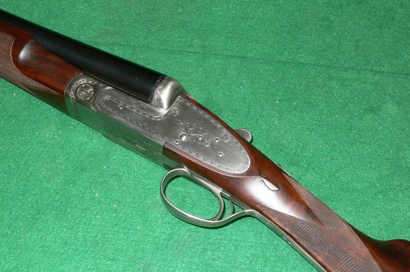 Wunderschöne Doppelflinte Garbi Royal, in Spanien gebaut. Die Waffe hat einen Einabzug mit Ejektor und englische Schäftung. Einen wunderschönen Nußbaum-Ölschaft mit handgeschnittenem Schaftabschluß. Die Schaftlänge beträgt 36,5 cm mit jagdlicher Schäftung ( hohe Senkung ) . Die Lauflänge beträgt 71 cm mit 1/2-1/1 Choke.