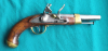 Mehrfach gestempelter Lauf, Kal. ca. 17,5mm glatt. Signiertes Schloß sowie Abnahmen. Beide Rasten gute stramme Funktion. Gestempelter Nussholzschaft. Messingbeschläge mit Abnahmen. Montierter Gürtelhaken. Orig. Ladestock mit Stempelung und Gewinde. Gesamtlänge 36,5cm.