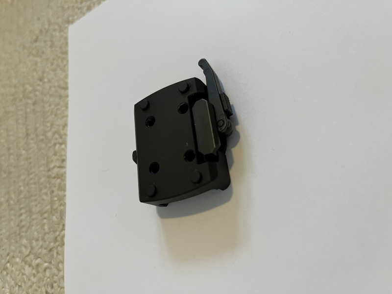 Shierld Sight Montage für Picatinny Schienen. Schnellspannmontage für Leuchtpunktvisiere mit Shield Sight Footprint für QD-Montage auf Picatinny-Schienen. Hochstabile und werkzeuglose Montage mittels Schnellspannhebel (Hergestellt von B&T für Shield Sights). Wie neu (einmal eingesetzt) und voll funktionsfähig. Neupreis € 150.