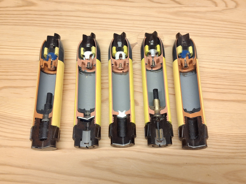 5 Schnittmodelle von deutschen WK2 Gewehr Sprenggranaten DEKO