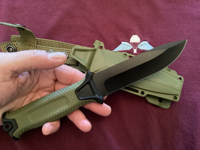 Die Scheide kann man anpassen, so dass das Messer auf verschiedene Art und Weise getragen werden kann!