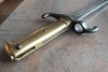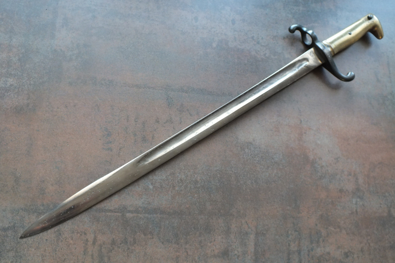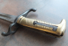 Sie bieten auf ein preußisches Infanterie- Seitengewehr Modell 1871 ohne Scheide. Es handelt sich um einen ehemaligen alten Bodenfund mit starker Korrossion im gereinigten und überarbeiteten Zustand ( siehe Bilder). Mit Hersteller: COULAUX & Co. KLINGENTHAL. Die eiserne Parierstange mit noch lesbaren Truppenstempel: 68.R.3.184. Der massive Messinggriff mit feiner Punze: überkröntes " L" ( König Ludwig Bayern ? ). Die Bajonett- Verriegelung funktioniert noch gut. Es ist nicht das feine Paradebajonett, aber mit historisch bewegender Geschichte. Privatverkauf ohne Gewährleistungen und keine Rücknahme.