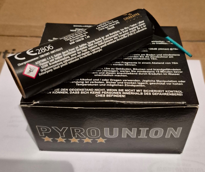 Verkaufe hier Schallerzeuger von Pyro Union.Die Schallerzeuger sind ordnungsgemäß verpackt und einwandfrei!Bitte beachten!Es handelt sich hier um Schallerzeuger der Kategorie P1. Diese sind ab 18 Jahren das Ganze Jahr über käuflich.Die Böller sind kein Silvesterfeuerwerk!Es wird eine Altersprüfung anhand des Personalausweises gemacht(Ausweißcopie)!Verkauf nur innerhalb Deutschlands Privatverkauf,keine Garantie bzw.Umtausch durch mich Bei Fragen,einfach schreiben!Viel Spaß beim bieten...................