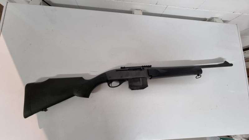 Sie bieten auf eine gebrauchte Remington 7400 Carbine Selbstladebüchse im Kaliber .30-06 Springfield mit schwarzem Kunststoffschaft mit Gummikappe.