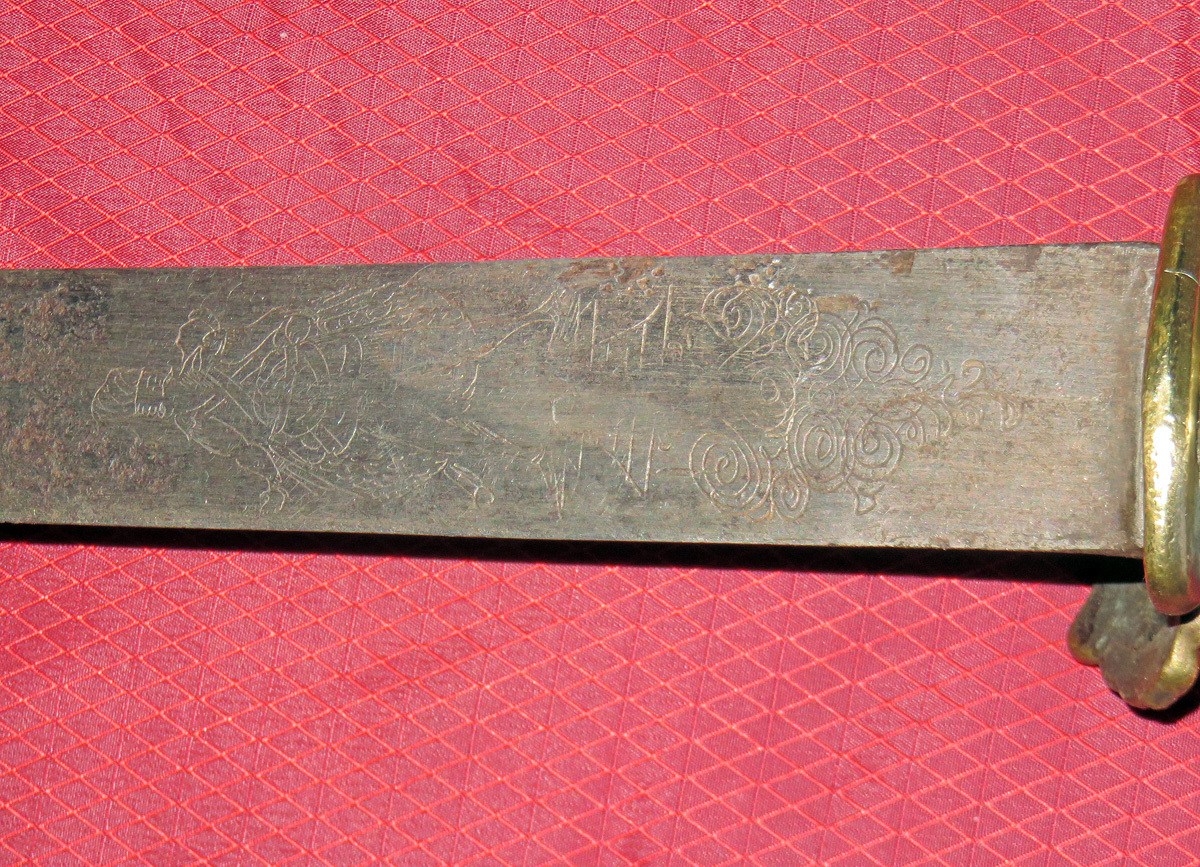 Beidseitig schwach erkennbare Ätzungen auf der Klinge.
