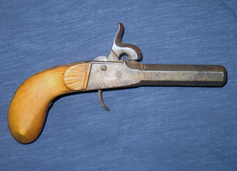 Kleine voll funktionsfähige Perkussionspistole mit verschnitzten Holzgriff.