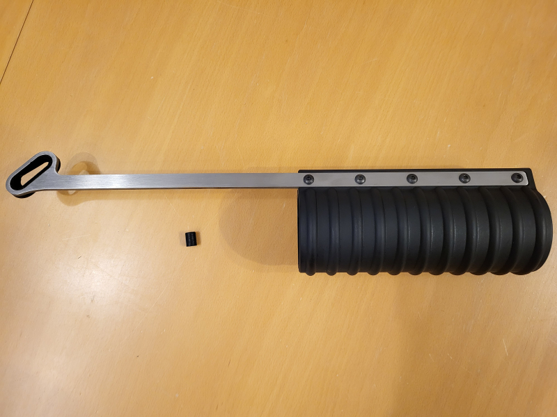Den Pump Action Kit dann einfach von vorne über den Lufttank schieben und am Kammerstängel "einhängen".