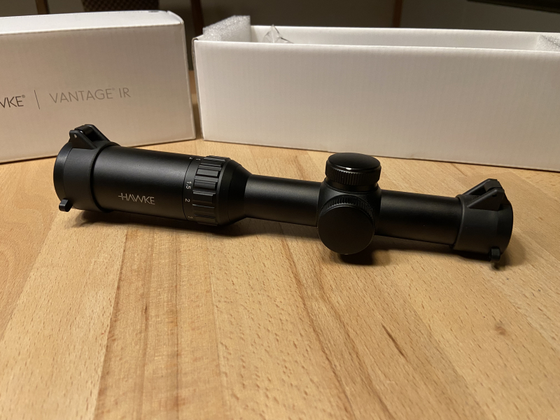 in dieser Auktion könnt ihr ein Hawke Vantage 1-4x20 Zielfernrohr mit Turkey Dot Absehen ersteigern. Der 1“Tubus weist geringe Montagespuren auf. Ich hatte das Glas auf einer Bbf 16/70 und 22wmr montiert. Das Glas ist schussfest und die Absehenverstellung funktioniert zuverlässig.