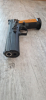 Flache orange Alugriffschalen, Jet-Funnel, verlängerter Magazinknopf, Daumenauflage und Speed-Hammer aus Aluminium sind Serie.