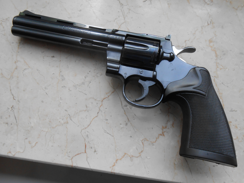 Colt Python im Kal .357Mag, Beschuss 1977 - Lauflänge 6". Waffe aus der "Guten" Zeit von Colt mit geringsten Passungen und super Timing.