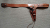 Zum Angebot gehört außerdem ein passender Westerngürtel mit Holster aus dickem, altem Leder. Das Leder dürfte zeitlich aus derselben Epoche stammen wie die Pistole selbst und passt optisch sehr gut zum Gesamtbild.