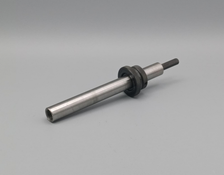 Die Welle ermöglicht den Antrieb des Hülsentrimmers mit einem Akkuschrauber und sorgt so für deutlich schnelleres und gleichmäßigeres Trimmen von Patronenhülsen. Ideal für Wiederlader, die effizient und kraftsparend arbeiten möchten.