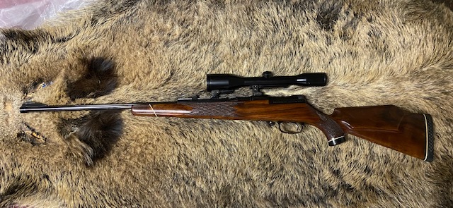 Guten Tag ich verkaufe diese Mauser M 66 im Kal. 30-06. Das Zielfernrohr ist ein Zeiss Diatal mit Abs. 4 in 6 x 42. Ein trocken stehender Einabzug ist auch schon vorhanden. Dieser bricht ohne jeden Vorweg glasklar. Gesamtlänge 104 cm und Lauflänge 62 cm. Viele weitere Informationen zu diesem Standard Modell finden sich ja im Netz. Ich kann sowohl den Zustand der Waffe, als auch des Glases nur als Bestzustand bezeichnen. Privatverkauf, daher keine Rücknahme usw. Viel Spaß beim Bieten.