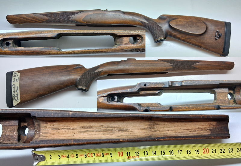 Angeboten ist ein Jagd Schaft Holz für Mauser K98 Jagdschaft für Stufenlauf System 8x57JS mit Gummikappe.