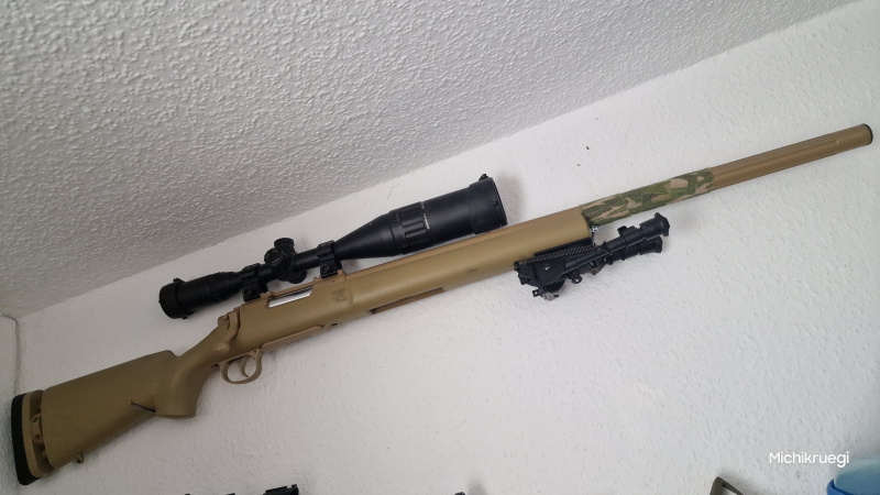 Wie auf den Bildern zu sehen...mit 3 Magazinen und mit großem Zielfernrohr,beleuchtetes Absehen in rot,grün,blau...funktioniert tadellos...wird nur verkaft da ich aufgehört habe und zu Schade ist um an der Wand zu verstauben...