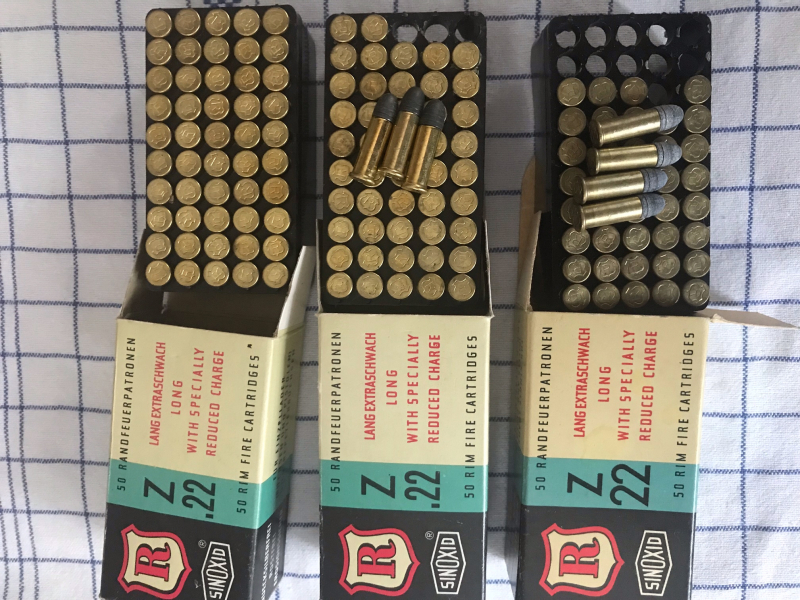 Von Privat aus einem Nachlass an EWB : Patronen im Kaliber ..22 LFB - von RWS - .22 Lang - 100 Patronen sehr guter Zustand und 43 Patronen leicht Oxydiert - Zustand siehe Bild - Privatauktion - daher keine Rücknahme - Versandpauschale 6 Euro - Versand nach Österreich nach Rücksprache -