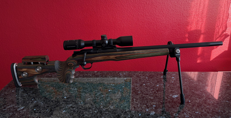 Ich trenne mich von meiner Blaser R8 Professional mit GRS Sporter Schichtholzschaft (2. bessere Generation) in der Farbe Green Mountain Camo. Kaliber der Büchse ist .308win, sie hat kein herausnehmbares Magazin und einen 60cm langen kannelierten Jagdmatchlauf (22mm Durchmesser), der super präzise schießt. Das System der Büchse ist gebettet, also wie vom Schafthersteller gefordert vom Büchsenmacher in den Schaft eingeklebt, sodass eine perfekte Einheit entsteht. Ebenfalls vom Büchsenmacher ist eine Versapodaufnahme vorne am Schaft installiert, sodass man Zweibeine, wie das auf den Bildern zu sehende und zum Angebot gehörende Spartan Valhalla nutzen und auch zB im Liegen schießen kann. Der Schaft ist werkzeuglos voll einstellbar und super gemütlich. Das abgebildete Zielfernrohr wie auch das Aimpoint Micro H2 gehört ausdrücklich NICHT mit zum Angebot, kann aber sofern noch nicht verkauft, dazu erworben werden.