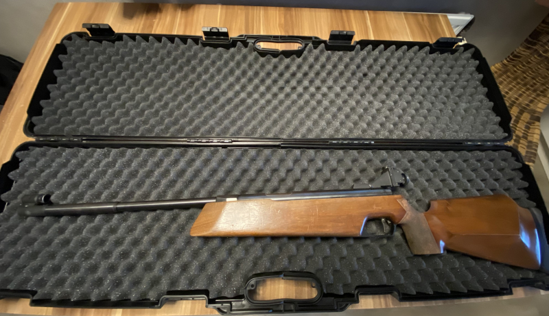 Gewehr wurde im Verein genutzt und funktioniert - dieses wurde getestet. Die Schaftkappe ist verstellbar. Diopter und Tunnel - alles dabei. Seitenspanner.