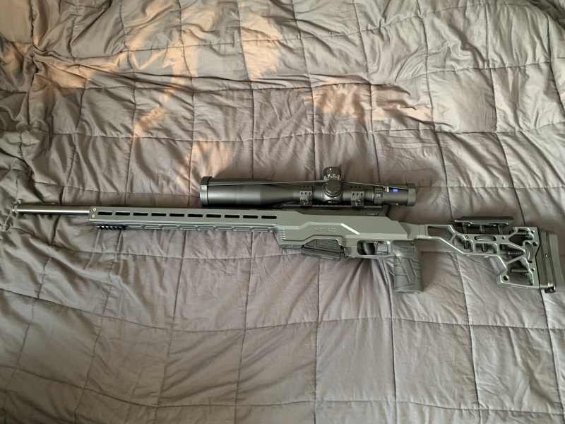Präzision wie von Anschütz gewohnt. Die Waffe hält 3cm auf 300m. Wegen Kaliberwechsel abzugeben, Waffe hat 280 Schuss durch, wie neu. Unschlagbarer Schlossgang und der 23mm dicke Matchlauf im MDT Chassis ist absolut anpassungsfähig in allem, eine Traumwaffe auch mit dem Zeiss LRP S3 in 6-36x56, bis 2000m und mit nem Verstellweg der fast ungeschlagen ist. Wer die Waffe mit Zielfernrohr, also komplett haben möchte macht mir bitte ein Angebot, Sofortkauf ist möglich. Diese Auktion bezieht sich auf die Waffe ohne Zeiss ZF. Wer richtig einsteigen möchte dem verrate ich die beste Laborierung und Geschosse, können mit erworben werden, inkl 100 Lapuahülsen einmal geschossen und wieder geladen. Auf der Zielscheibe sind 5 Schuss auf 100m