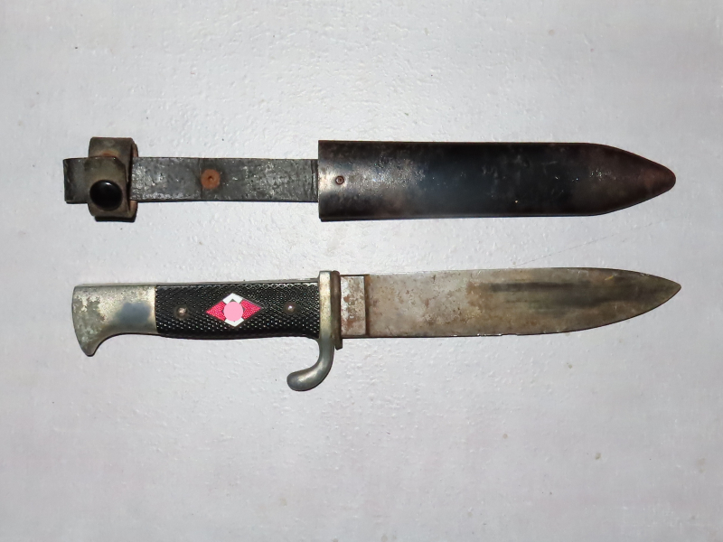 ehrliches Fahrtenmesser, die Raute ist leicht beweglich- so wie es sein muss , oben am Griff hat das Fahrtenmesser Zinkfraß