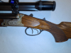 Drilling Linksausführung Krieghoff Plus im cal. 9,3 x74 R 12/70 mit Krieghoff Einstecklauf im cal. .22 Hornet Mündungslang von vorne verstellbar Lauflänge: 635 mm Gesamtlänge:1050 mm Schaftlänge:365 mm mit Zeiss Diavari 3-12x56 Leuchtkreuz ( ZF war zur Durchsicht im Werk) mit Schwenkmontage. Waffe im sehr guten Zustand, aus Nachlass. Verkauf im Kundenauftrag.