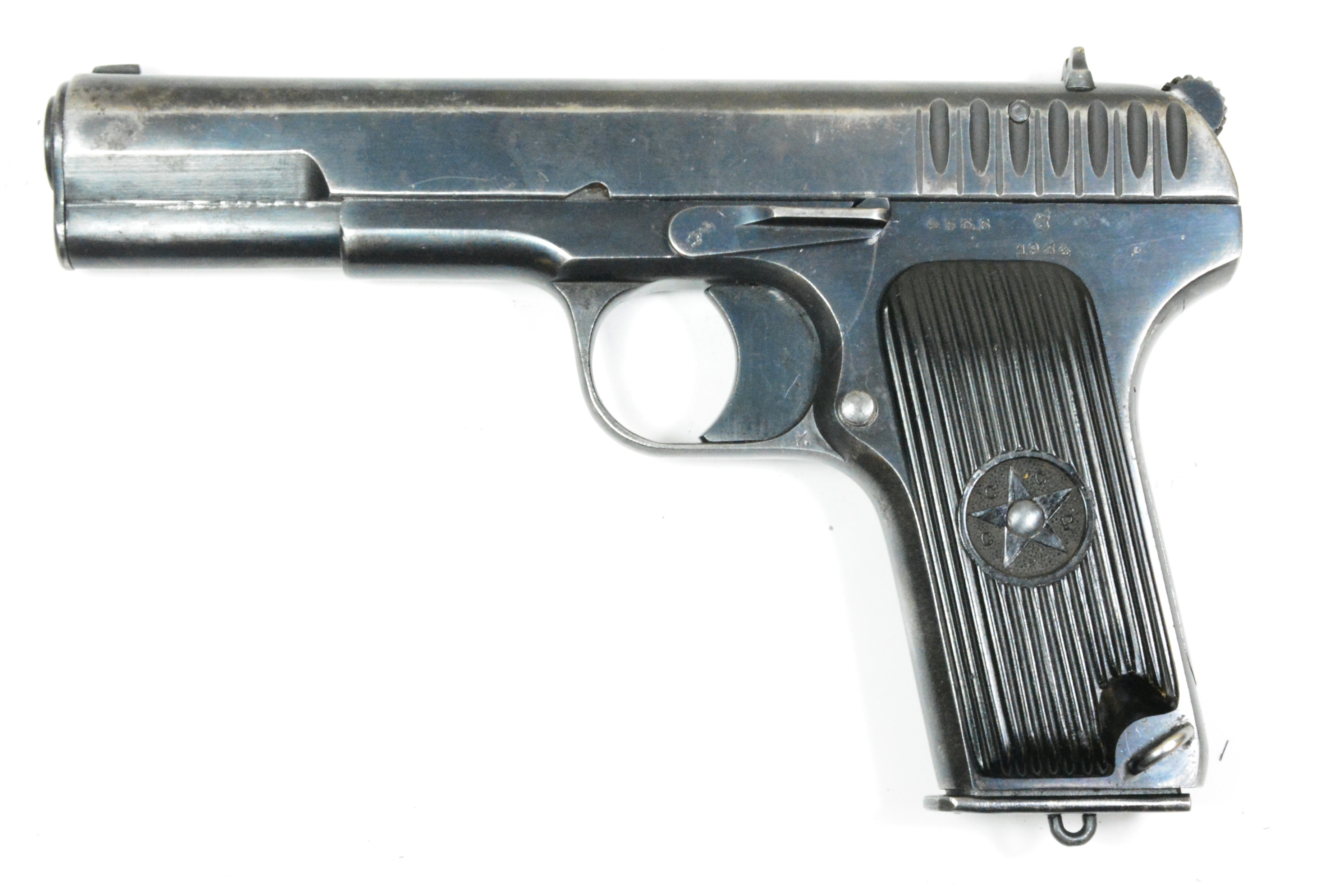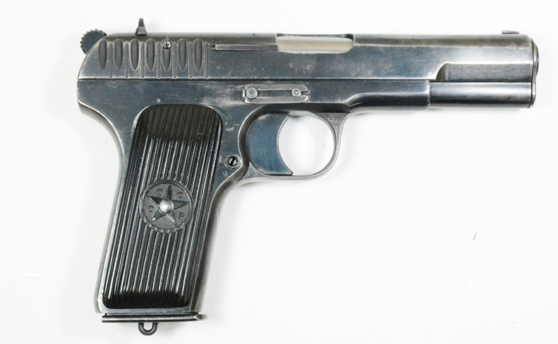 Sie bieten auf die abgebildete und äußert seltene Tokarev-Pistole TT30. Diese Pistole ist der Vorläufer der späteren Tokarev TT 33. Die TT30 zeichnet sich u.a. durch den eingesetzten Griffrücken aus. Die Tokarev befindet sich in einem sehr guten Zustand, kein Flugrost, stellenweise ist die Brünierung abgegriffen, s. Fotos. Die Pistole ist nr.-gleich. Ein gültiger Beschuß ist nicht gegeben. Abgabe nur an einem Inhaber einer WBK/S oder an einem deutschen Waffenhändler. Es handelt sich hierbei um eine private Auktion ohne Rückgabe, keine Garantie-oder anderweitiger Gewährleistungen. Versand ins Ausland nur über einen deutschen Waffenhändler. Eine Erwerbsberechtigung ist zwingend erforderlich.