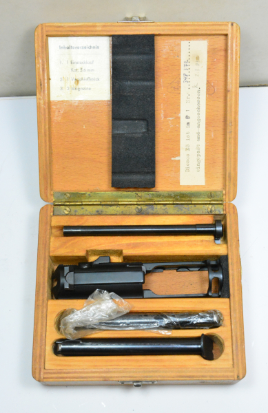 Sie bieten auf das abgebildete Wechselsystem für die Pistole P1. Das Wechselsystem wurde von Manurhin an die Berliner Polizei geliefert und ist entsprechend beschriftet. Das Wechselsystem befindet sich in einem fast fabrikneuen Zustand. In dem Aufbewahrungskasten befinden sich orig Zettel der Polizei, die jedoch nicht zu dem Wechselsystem passen, abweichende Nr. Es handelt sich hierbei um eine private Auktion ohne Rückgabe, keine Garantie-oder anderweitiger Gewährleistungen. Versand ins Ausland nur über einen deutschen Waffenhändler. Eine Erwerbsberechtigung ist zwingend erforderlich.