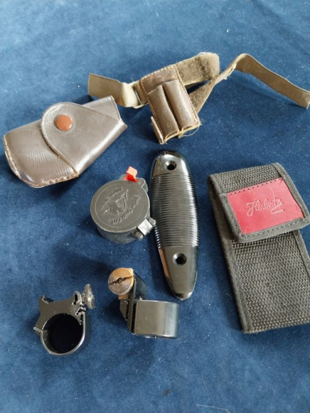 Mündungsschoner max Laufdurchmesser 25 mm, Patronenhalter zur Armbefestigung Hornet bis 223, Messertasche 11 cm lang, Flip-Cap Butler-Creek max 40 mm innen, Schaftkappe 13 cm lang, max 40mm breit. original Weaver-Ringe für 25,4