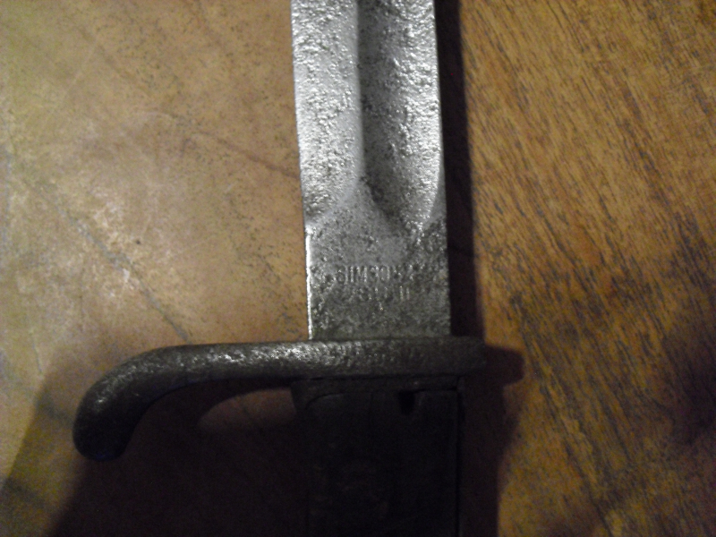 Hallo da ich meine Blankwaffensammlung auflösen möchte verkaufe ich hier einige Bajonette und Dolche. So auch dieses Bajonett 98/05 was meines Wissens nach für das Gewehr 98 bestimmt war. Leider habe ich keine Scheide hierfür. Die Klinge hat starke Rostnarben. Die Stempelung Simson & Co Suhl ist gut zu erkennen. Der Verriegelungsdrücker ist fest und die Griffschalen sind Wurmstichig. Schauen sie auch in meine anderen Angebote. Bei fragen bitte melden!