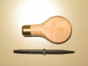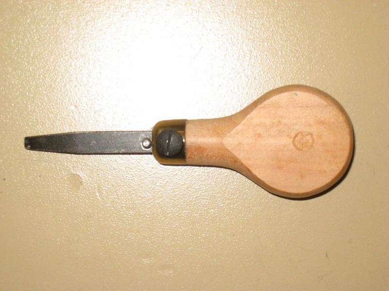 Alter Schraubendreher als Zubehör für Schweizer Gewehre (Vetterli ?), Holzgriff mit Schweizer Kreuz und Messingkappe, Klinge umsteckbar für zwei Breiten, Gesamt-Länge ca. 115 mm, unbenutzt. Es sind zwei Stück vorhanden, Auktion gilt nur für ein Exemplar. Versand per Brief 2 €, auf Wunsch als Päckchen 5 €.