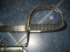biete aus einer alten Sammlung einen Schweizer Ordonanzdegen M 1899 mit einer Klinge von Hörster aus Solingen. Auf der Klinge links "E&F Hörster", darunter Solingen sowie die Jahreszahl 1909 (Bild 3). Rechts Punze mit Schweizer Kreuz, Römisch III und die Waffennr. (Bild 5). Der Griff mit Rochenhaut und Drahtwicklung, alles fest und schön. Das Gefäß mit dem übl. Muster und Schweizerkreuz (Bild 4). Die Klinge mit doppelten Entlastungsrillen, vernickelt mit noch 80% Nickel. Kein Rost. Länge ca. 85cm. Die Scheide blank und rostfrei mit leichten Dellen im mittleren Bereich. Rechts unten an der Schleppe die Punze mit dem Schweizer Kreuz.