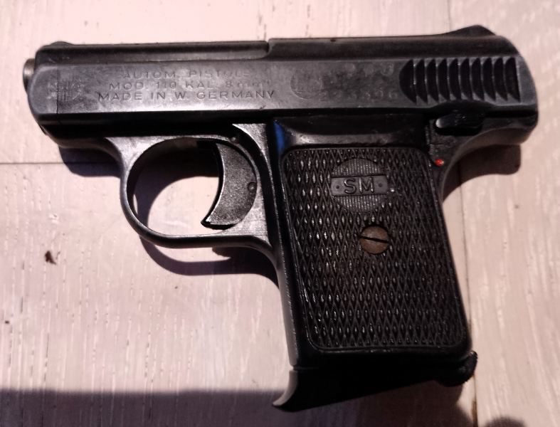 Ich biete aus meinem Bestand eine gebrauchte, aber gut erhaltene SM 110 Pistole in 8mm Knall an. Sie hat noch den langen 25 ACP Magazinschacht und einen Stahllauf, wie das früher üblich war. Viele wurden daher auf 25 ACP umgebaut...Ich habe sie selber nie geschossen. Der Zustand ist hoffentlich auf den Bildern gut erkennbar. Es handelt sich um einen Privatverkauf ohne Gewährleistung oder Sachmängelhaftung nach neuem EU-Recht.