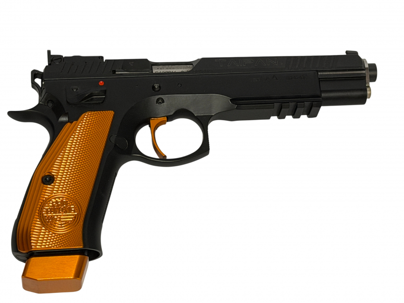 Wir bieten hier im Kundenauftrag eine neuwertigehalbautomatische Pistole aus dem Hause CZ, Modell Shadow Taipan ProTuningim Kaliber 9mm Luger an.