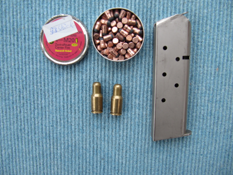Biete Übungsmunition ca.93 Stück mit zwei Ladehülsen für cal.45 und