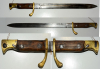 Deutsches Behelfsbajonett, ich denke Feldfertigung, Klinge zumindest aus anderer Klinge geändert, Parierbügel und Knauf aus massiem Messing gefertigt, Griffschalen grob vernietet, um 1916