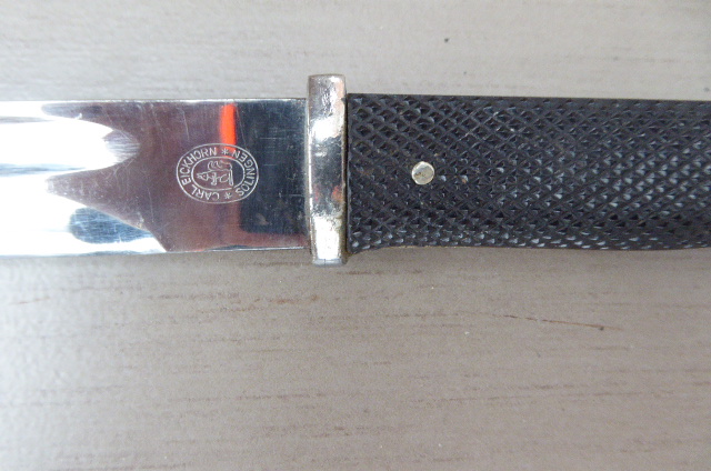 Biete aus meiner Sammlung ein originales Eigentumsbajonett 98 k aus der Zeit vor 1942 an. Klinge ohne Makel, sehr schönes Hersteller Logo von Carl Eickhorn, Solingen, leider ohne Scheide, Griffschalen nicht zerbrochen oder Risse, Parierstange ohne Knauf ( abgebrochen ? ) Gesamtlänge 37 cm Klingenlänge 25 cm . Der Drücker funktioniert