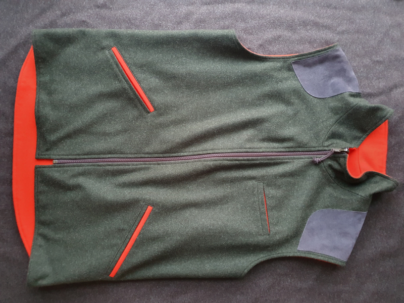 Die Wendeweste ist aus grünem Superiorloden außen und aus signalfarbenem Loden innen und nur 2x getragen worden.