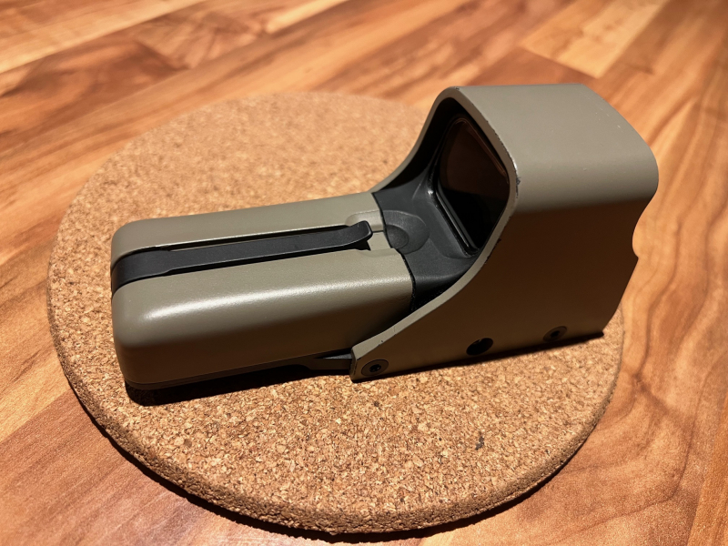 Eotech von 2009 mit Gebrauchsspuren. Funktion ist gegeben. Zustand siehe Bilder. Absehen ist ein roter Kreis mit Punkt in der Mitte.