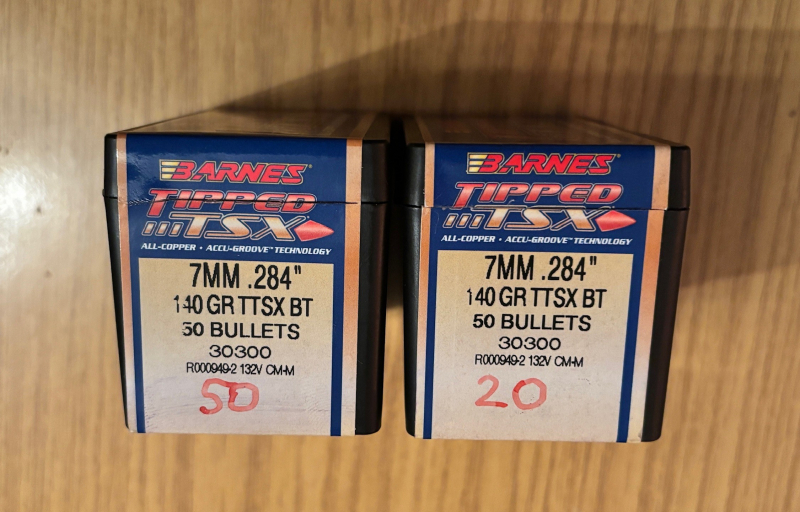 Biete eine geöffnete Packung Barnes TTSX-Geschosse in .284 (7mm) in 140 grain an mit 50 Geschossen sowie eine Packung mit 20 Geschossen, da ich mit dem Kaliber nicht mehr so viel mache. Insgesamt also 70 neue Geschossen, NICHT entladen, nigelnagelneu.