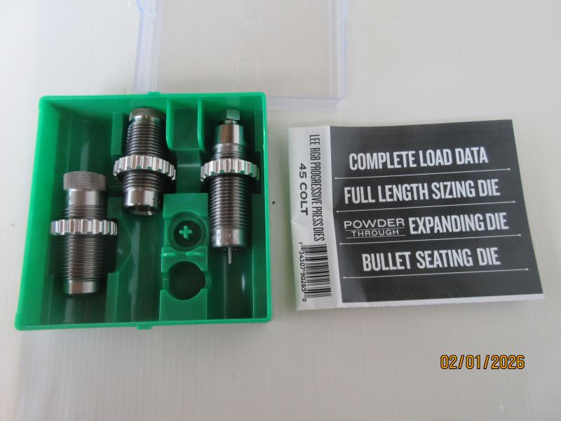 3-teiliger Hartmetall-Matritzensatz .45 Colt von LEE,unbenutzt,neu.Eventuelle Detailfragen bitte vor dem Bieten stellen,weitere und bessere Fotos auf Anfrage.Dies ist ein Privatverkauf keine Garantie.
