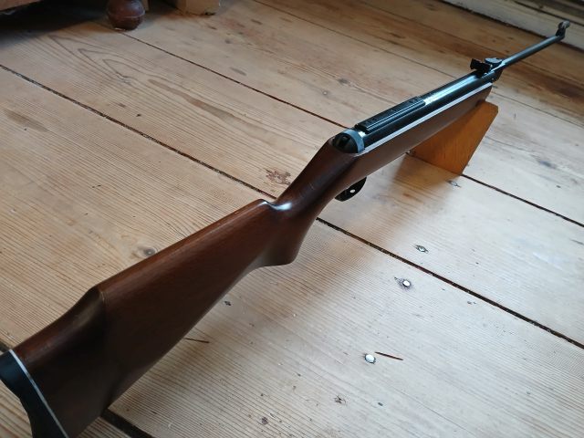 Angeboten wird aus Nachlaß/Familiensammlung eine Waffe im neuwertig zu nennenden Originalzustand mit dem guten Mikrometervisier und Spitzkorn im hohen Korntunnel. Das Luftgewehr ist augenscheinlich, trotz seiner hervorragenden Eigenschaften, nach Kauf und kurzem Gebrauch direkt in den Schrank verbracht und nicht weiter benutzt worden. Der funktionale Probeschuß braucht in diesem Fall ob seiner Schärfe einen Vergleich mit aktuellen Luftgewehren nicht zu scheuen. Alles an diesem Gewehr scheint ohne Fehl und Tadel, an ein, zwei Stellen weist der Buchenholzschaft kleine, eher minimale, Druckstellen durch unbedachtes Zurückstellen nach erfolgter Ansicht auf. Bedauerlicherweise liegt ein kleiner Kratzer auf dem Schriftzug made in West-Germany. Die Diana 28 wurde mit einer Schaftkappe ausgeliefert. Grundsätzlich bestünde die Möglichkeit einer vorherigen Inaugenscheinnahme der Diana 28, die eine unbedingte Terminierung erforderte.