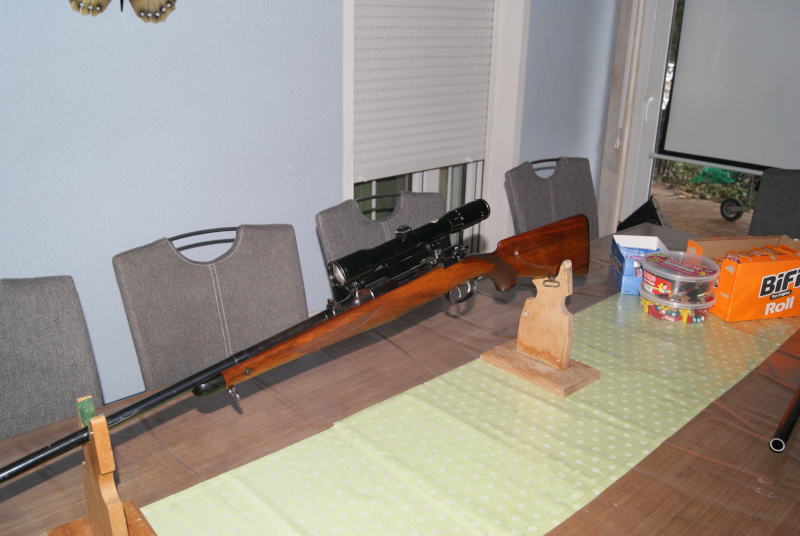 Steyr-Dreifußmontage, ZFCarl Zeiss1,6-6x, Abs. 1, dt. Schaft mit dt, Backe, sehr wenig geschossen, Dreistellungs,-und Schiebesicherung
