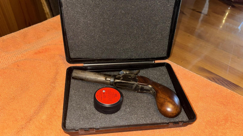 Diese schöne Vorderlader Pistole - PEDERSOLI, Kaliber 44 - ist für mich im neuwertigen Zustand. Ein kleines Döschen Zündhütchen lege ich dabei.