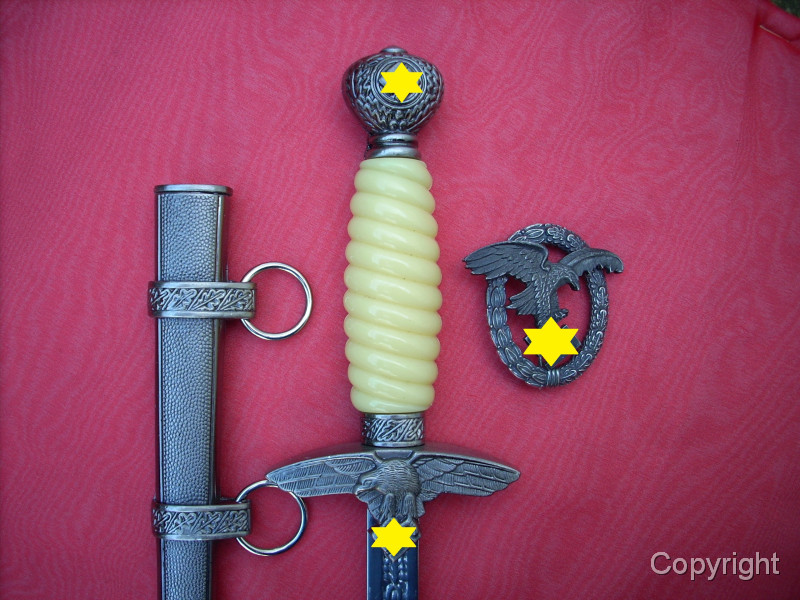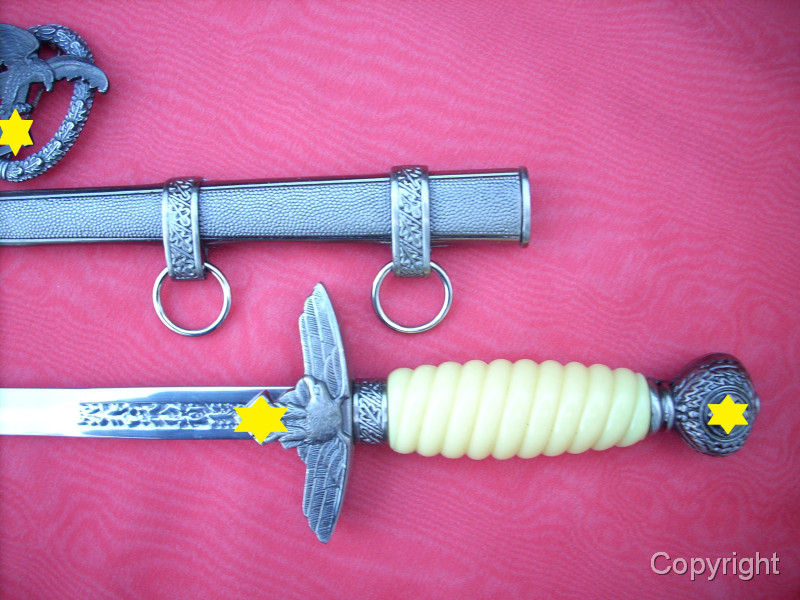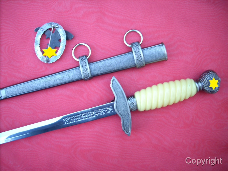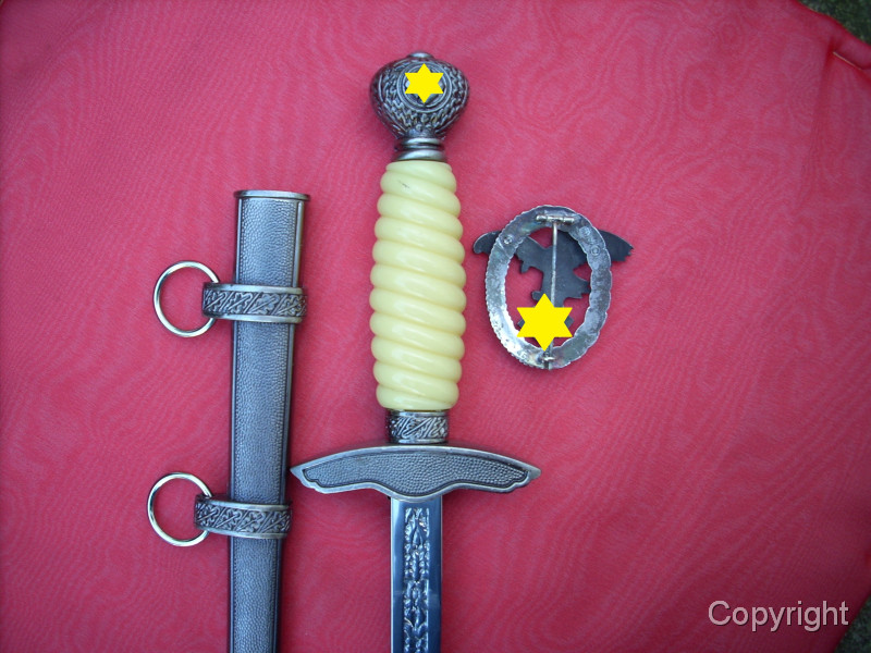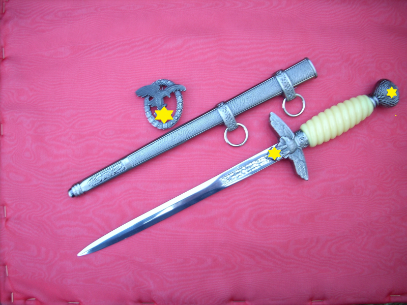 Sehr schönes Set: Luftwaffendolch LOD für Offiziere der Luftwaffe mit Verzierungen auf der Klinge. Dabei ein Beobachterabzeichen. Äußerst geringe Gebrauchsspuren. Kein Herstellerlogo. Sehr guter Zustand siehe Fotos, die, wie immer, Bestandteil der Artikelbeschreibung sind. Keine Garantie und keine Rücknahme.