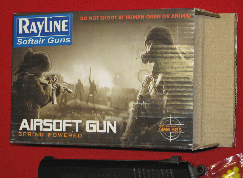 Zum Verkauf kommt, eine Softair, RAYLINE noch original verpackt und nur für das Bild mal aufgemacht, was für Sammler