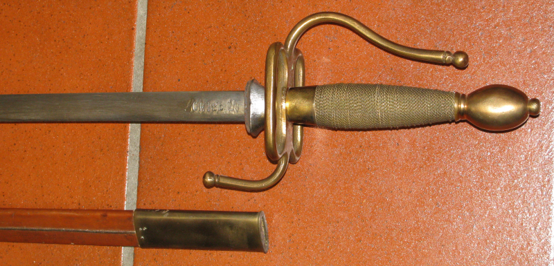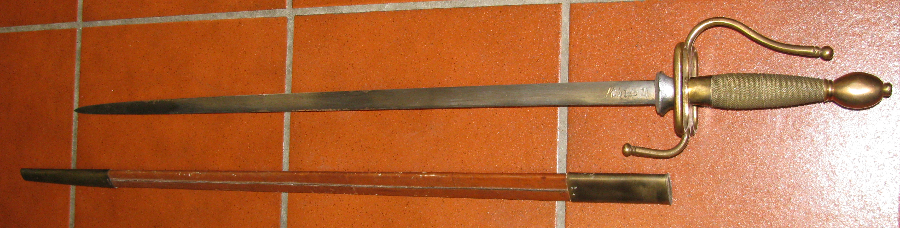 Zum Verkauf kommt ein mir unbekannter Degen mit Lederscheide