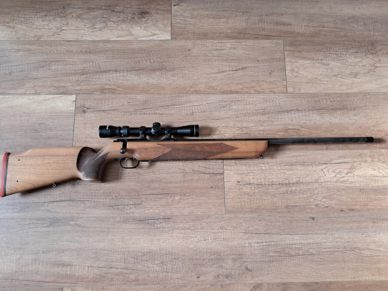 Versteigert wird eine Matchbüchse im Kaliber. 22lfb. Das Gewehr ist ein Einzellader und sehr präzise. Auf einer stabilen Ringmontage ist ein Tasco (Pronghorn) 3-9x verbaut. Es kann ein Zweibein montiert werden. Zudem hat sie vorne am Lauf ein Gewinde welches mir aber für einen Dämpfer (nicht erlaubt oder nur mit Genehmigung) oder Kompensator sehr grob vorkommt. Deshalb kann ich nicht sagen wofür es mal gedacht war. Die Waffe fristet bei mir seit Jahren ein Leben im Waffenschrank, bis auf einen Besuch des Schießstandes vor einigen Wochen und soll deshalb jetzt einen neuen Besitzer finden der ein solches Schätzchen auch nutzen kann. Der Schaft hat minimale fast nicht sichtbare Gebrauchsspuren, einen ergonomischen, steil stehenden Pistolengriff und liegt gut in der Hand.