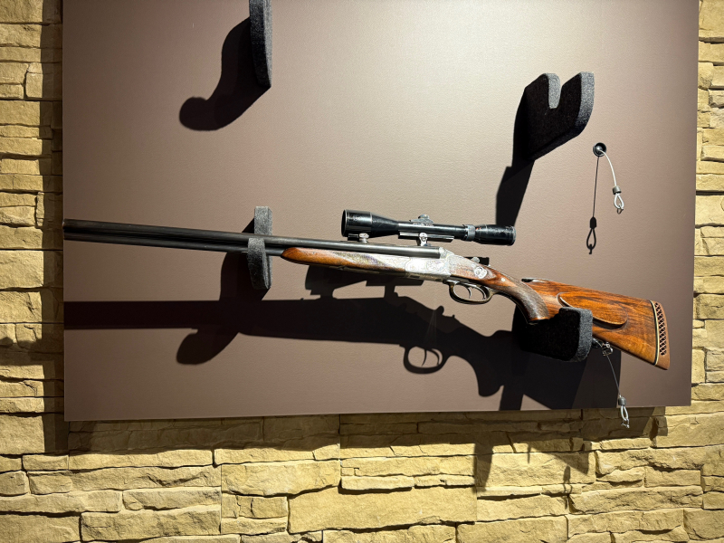 Der Drilling verfügt über sehr schöne Gravuren auf der Aluminium-Basküle. Auf der linken Seite befindet sich Schwarzwild und auf der gegenüberliegenden Seite Rotwild.